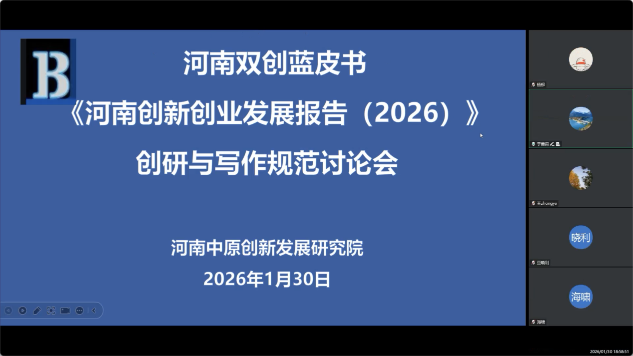 寒假期间,研究院组织召开蓝皮书撰写线上工作会议,全体撰写人员齐聚“云端”,明确写作任务、敲定规范要求,共享最新数据资料,交流写作思路与研究心得。大家秉持着 “研以致用、精准务实” 的理念,以严谨的治学态度、专业的研究视角,字斟句酌打磨内容、反复推敲论证观点,力求用详实的数据、精准的研判、可行的建议,打造一份兼具前瞻性、针对性与可操作性的高质量决策参考,让智库成果真正成为河南创新创业发展的 “指路明灯”。