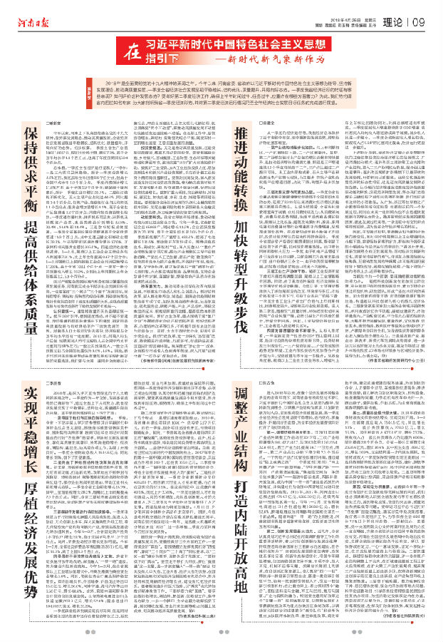 编者按:2018年是全面贯彻党的十九大精神的开局之年。今年以来,河南省委、省政府以习近平新时代中国特色社会主义思想为指导,坚持新发展理念,推动高质量发展,一季度全省经济社会发展呈现平稳增长、结构优化、质量提升、开局向好态势。一季度我省经济运行的特征有哪些表现?如何评价这种发展态势?要做好第二季度经济工作,确保上半年时间过半、任务过半,应重点在哪些方面着力?为此,我们特约请省内四位知名专家,为大家剖析我省一季度经济形势,并对第二季度经济运行情况乃至全年经济社会发展目标任务的完成进行展望。